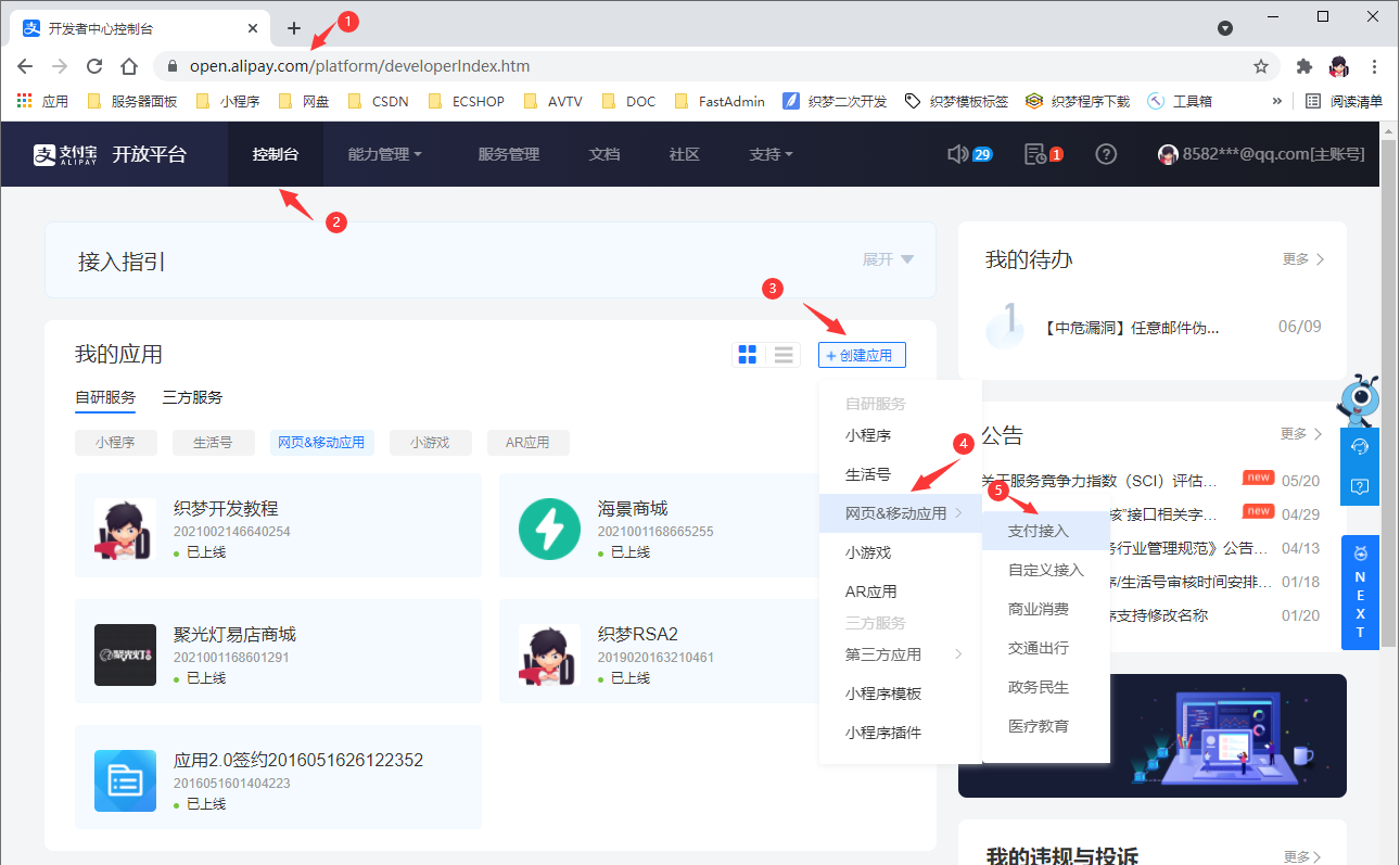 申請開通認(rèn)證支付寶支付資格,添加應(yīng)用