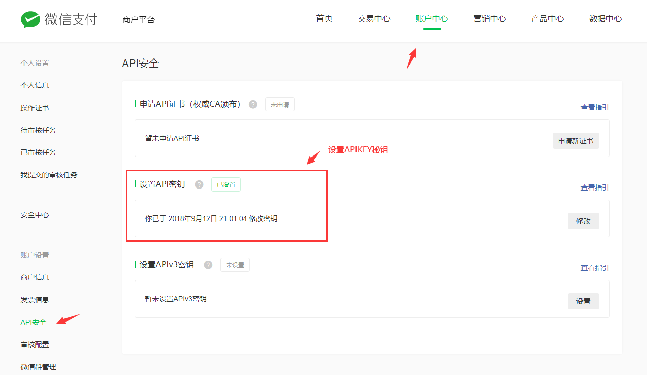 設(shè)置得到微信支付商戶密鑰ApiKey