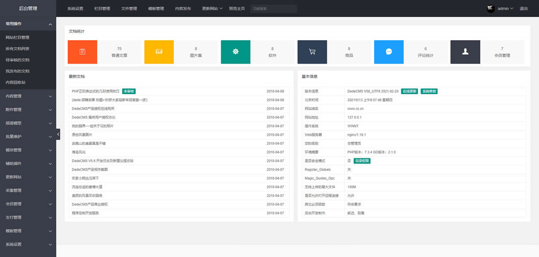 織夢(mèng)最新layui-v2.6.6版本后臺(tái)
