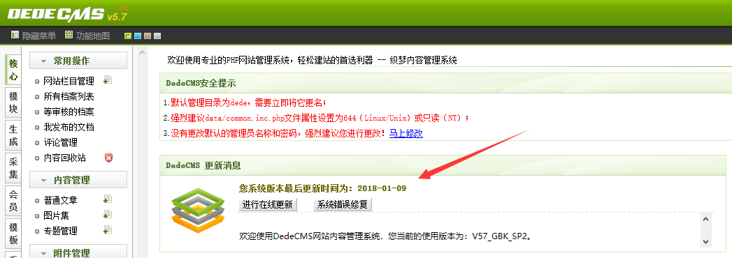 1、首頁,要確認你的織夢程序是最新的 2018-01-09