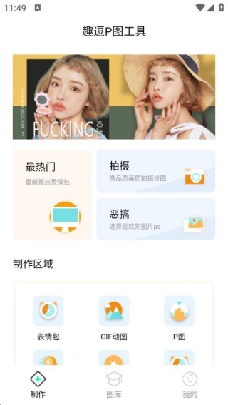 1、進(jìn)入平臺首頁后即可開始制作,這里有最新最熱門的表情包供您選擇,同時還能享受高質(zhì)量的拍攝和修圖體驗(yàn)。惡搞圖片的操作非常簡便,在制作區(qū)域提供了各種免費(fèi)素材。