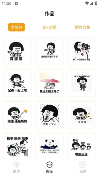 2、圖庫提供了各種表情包素材,還有GIF動圖,以及豐富的圖片合集供你選擇。