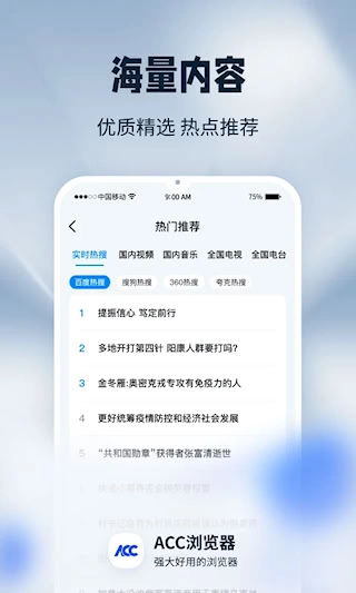 ACC瀏覽器是一款主打輕量、快速的移動(dòng)端網(wǎng)頁(yè)瀏覽工具。它體積小巧,占用系統(tǒng)資源很少,能帶來(lái)流暢的網(wǎng)頁(yè)加載與滾動(dòng)體驗(yàn)。同時(shí),它具備出色的廣告攔截與隱私保護(hù)功能:的過(guò)濾引擎可以有效屏蔽彈窗廣告、視頻廣告等各類干擾元素,為用戶營(yíng)造潔凈的閱讀環(huán)境;還支持無(wú)痕瀏覽模式,不會(huì)記錄瀏覽歷史、緩存和Cookie,能更好地防止個(gè)人數(shù)據(jù)泄露。