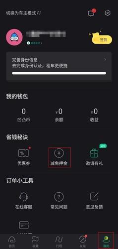 我們需要在“我的”頁面里點擊“減免押金”按鈕。