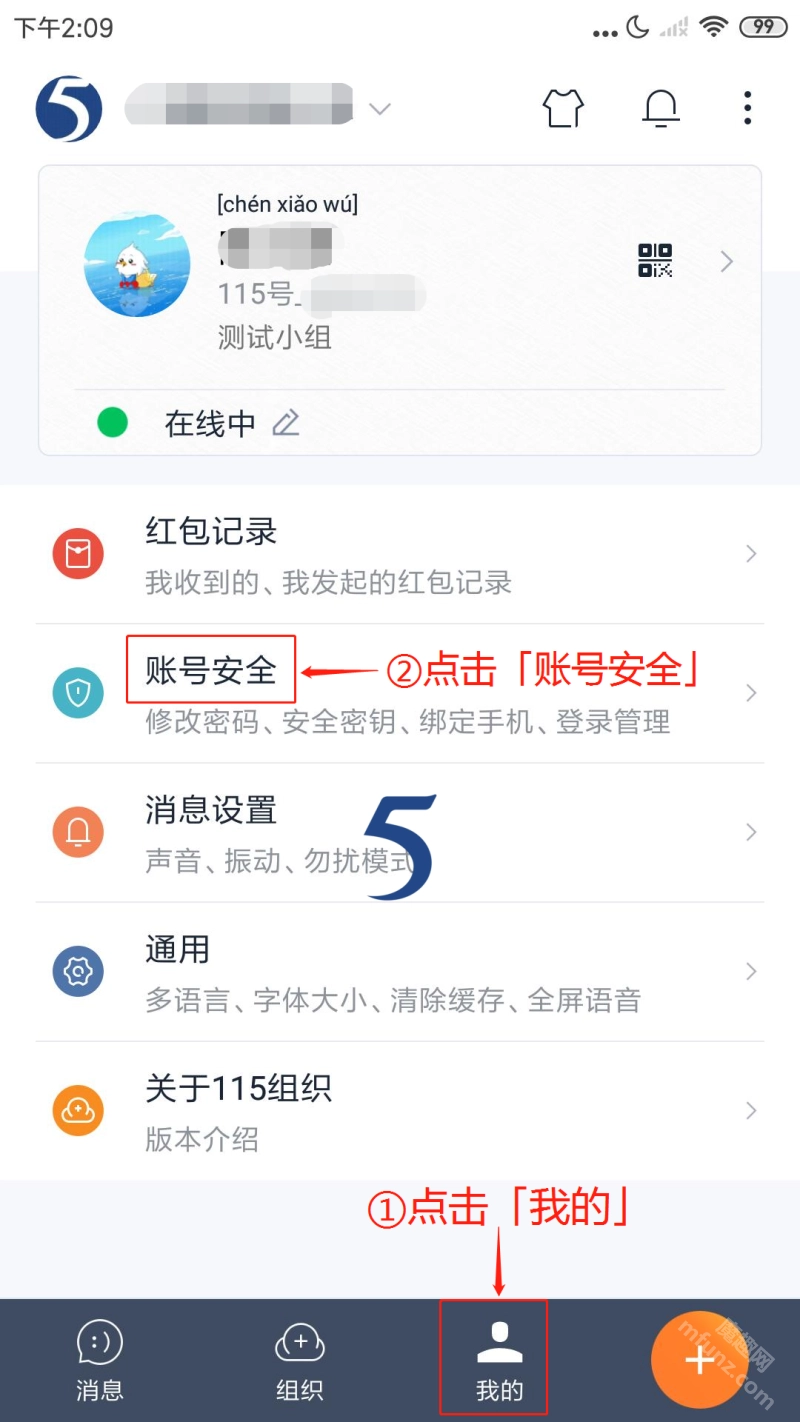 打開(kāi)115管理App,進(jìn)入“我的”頻道,接著點(diǎn)擊“賬號(hào)安全”。