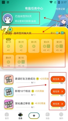 進(jìn)入【任務(wù)】界面完成簽到,連續(xù)簽到滿7天就能獲得抽取大獎(jiǎng)的機(jī)會(huì)。