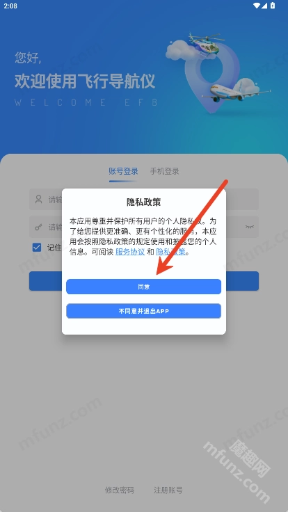 打開飛行導(dǎo)航儀點擊同意進入軟件
