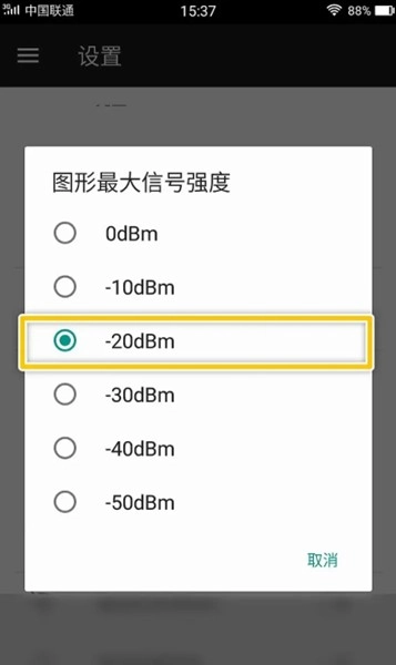 在“圖形最大信號(hào)強(qiáng)度”這一列表項(xiàng)里,挑選出需要調(diào)整的信號(hào)強(qiáng)度dbm值。