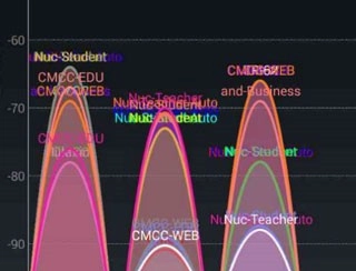 使用Wifi分析助手檢測(cè)Wifi信號(hào)強(qiáng)度時(shí),能夠切換多種視圖模式。像圖中所示,每條線路對(duì)應(yīng)不同顏色的折線,屏幕頂部還標(biāo)注了各無(wú)線網(wǎng)絡(luò)對(duì)應(yīng)的顏色標(biāo)識(shí),借助折線圖這種視圖模式,我們能更直觀地觀察到不同無(wú)線網(wǎng)絡(luò)的信號(hào)強(qiáng)度變化情況。
