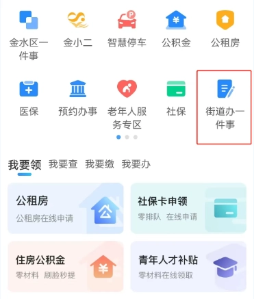 進(jìn)入?yún)^(qū)縣頁面后,找到并點(diǎn)擊“街道辦一件事”選項(xiàng),即可選擇通過街道辦理相關(guān)事項(xiàng)。