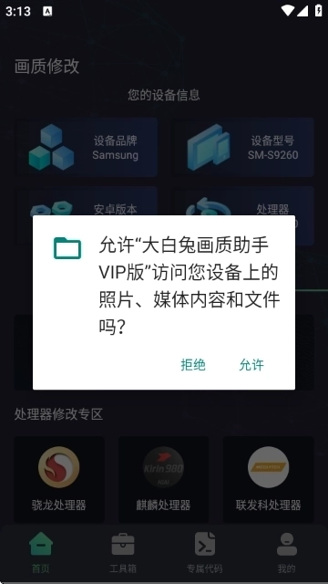 切換到“專業(yè)畫質(zhì)”板塊,可點(diǎn)擊“一鍵修改優(yōu)化”快速優(yōu)化畫質(zhì),也可在“處理器修改專區(qū)”選擇對(duì)應(yīng)處理器(驍龍、麒麟、聯(lián)發(fā)科)進(jìn)行針對(duì)性優(yōu)化。