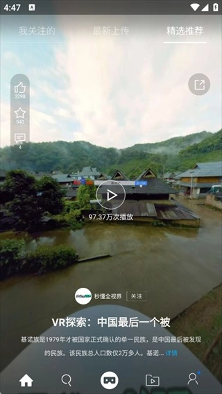 打開UtoVR應(yīng)用程序,在首頁的精選推薦板塊能夠?yàn)g覽到各種各樣的視頻內(nèi)容。