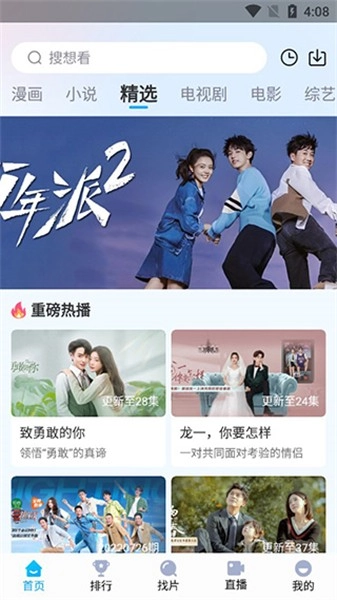 先把快云影音安裝好,完成賬號注冊和登錄后進(jìn)入軟件首頁,就能看到為大家精心推薦的各類豐富經(jīng)典影視內(nèi)容;首頁還設(shè)有漫畫、電視劇、電影、綜藝等不同分類板塊,方便大家快速定位到自己感興趣的內(nèi)容。