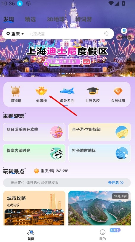 在城市攻略頁面里找到“必游榜”板塊,點擊它就能查看熱門景點的列表了。