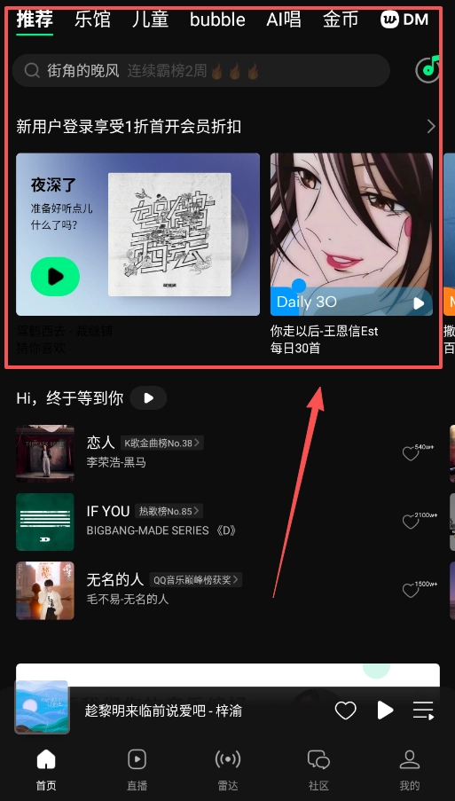 首先打開QQ音樂,在首頁的“推薦”板塊里,你能看到像每日30首這樣的個性化歌單,這些歌單會自動保存,方便你之后在“我的”頁面快速找到它們。
