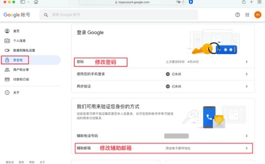 修改密碼,輔助郵箱