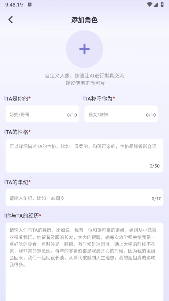 如圖所示,輸入相關(guān)角色信息后,點(diǎn)擊底部的“添加角色”按鈕即可。