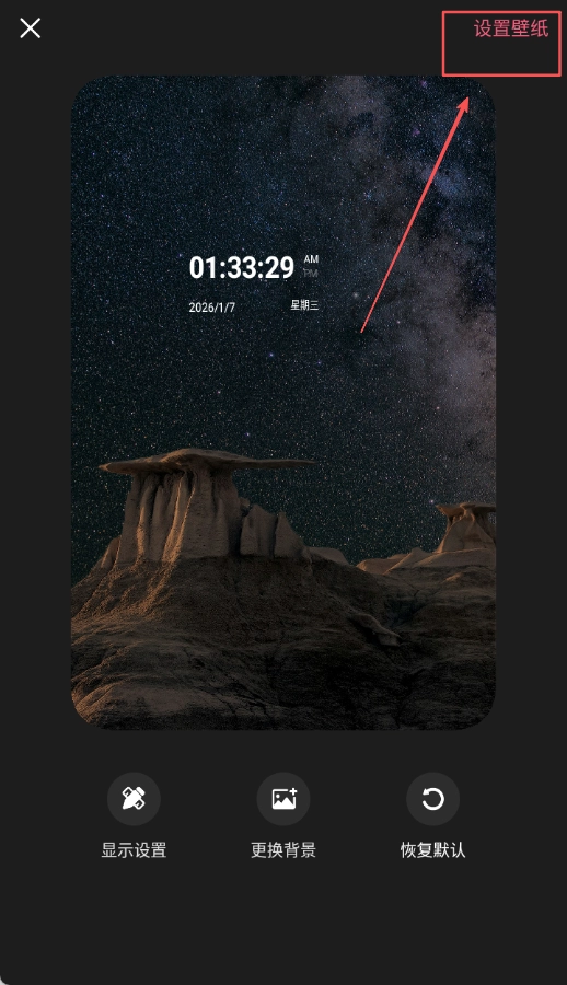 4、完成個(gè)性化設(shè)置后點(diǎn)擊右上角設(shè)置壁紙按鈕確認(rèn)操作,將調(diào)整后的壁紙應(yīng)用到設(shè)備上顯示。