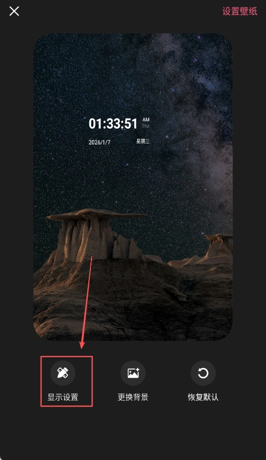 進(jìn)入設(shè)置界面后,可通過顯示設(shè)置中的更換背景等具體功能,對(duì)壁紙的顯示效果以及背景內(nèi)容的細(xì)節(jié)進(jìn)行調(diào)整。