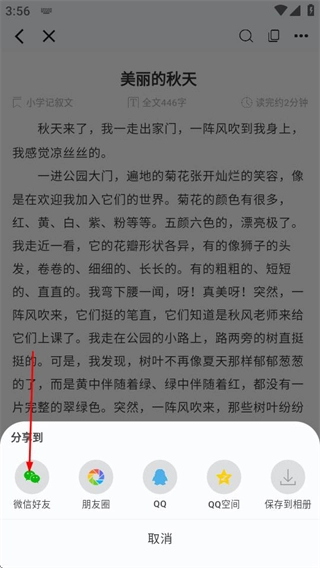 4、在分享彈窗中,選擇對應渠道即可完成該范文的分享操作。