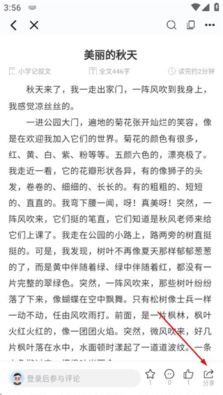 3、在范文詳情頁面,點擊分享按鈕,可彈出分享渠道選擇彈窗。