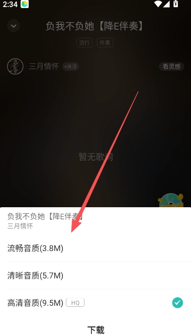 3、選擇要的音質(zhì)點(diǎn)擊,進(jìn)度可以在我的歌曲中查看。