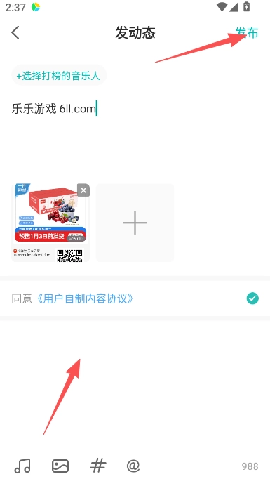 4、編輯內(nèi)容主題和內(nèi)容文字,點(diǎn)擊發(fā)布后完成即可。