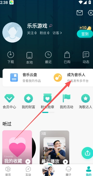 1、點(diǎn)擊“我的”進(jìn)入個(gè)人主頁(yè),接著選擇“成為音樂(lè)人”的功能選項(xiàng)。