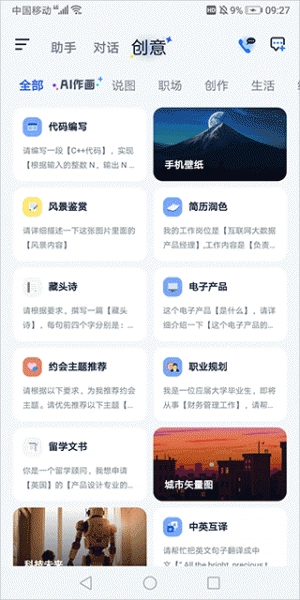 助手模塊里包含不少涉及創(chuàng)作、生活、職場等領域的AI助手功能。