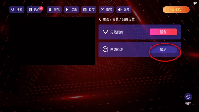 進入網(wǎng)絡(luò)設(shè)置界面,點檢測。