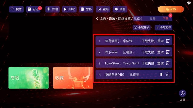點歌后顯示失敗請重試。