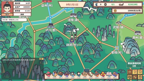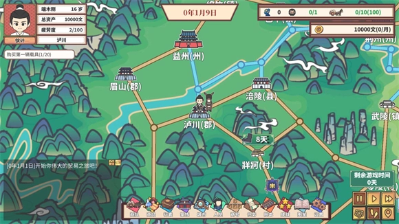 到了后期,錢攢夠了,商隊(duì)的寶物也都集齊了,就不用再四處奔波,可以選個(gè)地方待著直接快進(jìn)時(shí)間,之后只需要專心打理商號(hào)就行。