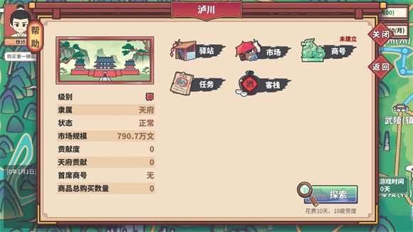 后續(xù)重點(diǎn)研究商號(hào)運(yùn)營:當(dāng)設(shè)置掌柜后,商號(hào)占比會(huì)自動(dòng)提升,此時(shí)可安排高謀略的謀士負(fù)責(zé)宣傳推廣。若宣傳成功率較低,建議優(yōu)先選擇價(jià)格戰(zhàn)策略,避免無謂耗時(shí)。宣傳成功后,該商號(hào)在12個(gè)月內(nèi)無法繼續(xù)增加占比,屆時(shí)無需過多關(guān)注,可換至其他城市開展宣傳。待各城市商號(hào)的基礎(chǔ)情況相近時(shí),再集中力量進(jìn)行大規(guī)模宣傳,無需追求百分百的完美效果,否則進(jìn)度會(huì)非常緩慢。