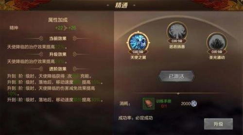 四、技能精通選擇 在主教的精通技能選擇上,小編建議優(yōu)先考慮天使之翼。該技能不僅能為角色帶來強(qiáng)勁的法術(shù)攻擊力加成,還能巧妙解決主教核心技能“天使降臨”冷卻時間過長的問題——由于精通技能天使之翼可額外為天使降臨提供一次蓄力機(jī)會,這使得我們能在短時間內(nèi)連續(xù)觸發(fā)回血效果,讓隊友的生命值以更快速度得到大量回復(fù)??梢哉f,天使之翼絕對算得上是輔助定位主教的必選神技之一。