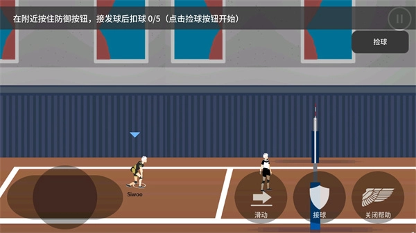 當(dāng)球靠近時(shí),我們點(diǎn)擊防御按鈕就能完成接球動(dòng)作,不過接球之后還需要進(jìn)行扣球操作。