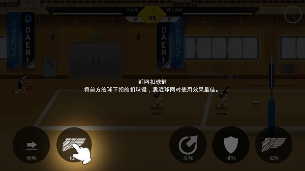 連續(xù)點(diǎn)擊兩次翅膀按鈕即可完成扣球動(dòng)作,第一次點(diǎn)擊觸發(fā)跳躍,第二次點(diǎn)擊實(shí)現(xiàn)扣球。