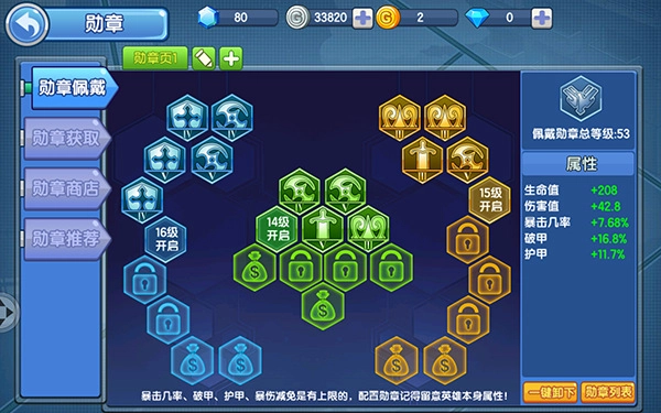 勛章是提升戰(zhàn)斗能力的關(guān)鍵方式之一。目前游戲內(nèi)設(shè)有1至5級的勛章,并且涵蓋防御、傷害等多種不同類型,關(guān)于具體的組合搭配,各位玩家可以自行探索嘗試。