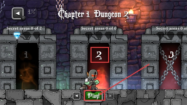1、在【Chapter-1-Dungeon-2】界面,點(diǎn)擊【Play!】按鈕進(jìn)入對(duì)應(yīng)關(guān)卡,開(kāi)啟該地牢的冒險(xiǎn)挑戰(zhàn)。