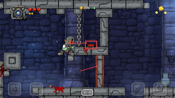 2、關(guān)卡內(nèi)觸發(fā)紅色機(jī)關(guān)后,會(huì)解鎖新路徑,同時(shí)繼續(xù)收集金幣提升【206】的分?jǐn)?shù)數(shù)值。
