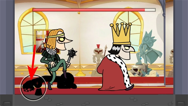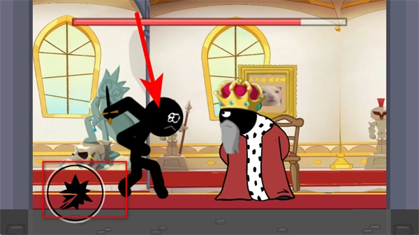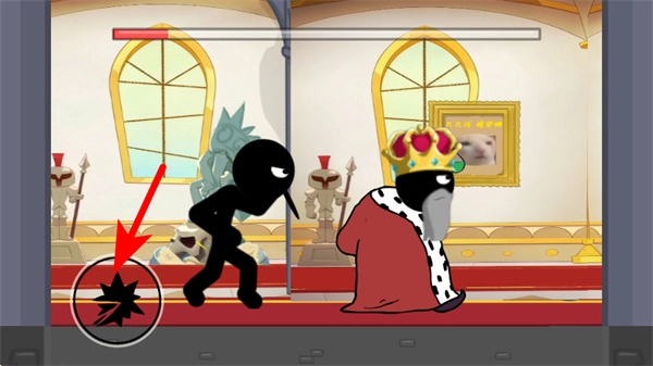 2、操控火柴人角色向國王方向移動,利用爆炸道具的效果靠近目標(biāo),完成前置步驟。