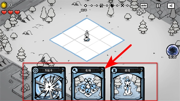 拖動卡牌在指定區(qū)域放置建筑和士兵,放置完成后戰(zhàn)斗自動進(jìn)行,每波勝利可領(lǐng)取卡牌與道具獎勵,冗余卡牌可售賣,遇商店可購卡補強(qiáng)陣容。