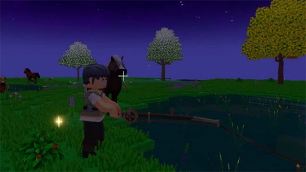 釣魚玩法里有各種各樣的魚類,得自己動手打造魚竿、收集餌料。當經過溪流或者河流的時候,跳進水里就能查看魚群的數量。釣上來的魚可以用來制作東西,也能拿去出售。