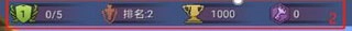 從左到右依次展示的信息是玩家等級、玩家的段位與排名、玩家當(dāng)前的榮譽值,還有玩家擁有的鑰匙數(shù)量。
