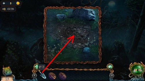 點(diǎn)擊鏟子,再點(diǎn)擊這一塊地面,就能鏟掉泥土。