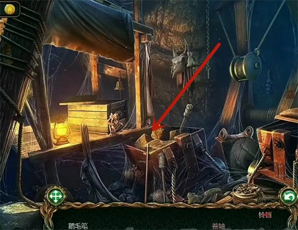 玩家若想解開(kāi)謎題,就得先找到鵝毛筆;而要找到鵝毛筆,需要點(diǎn)擊左邊的抽屜,再拿走上面的書籍才行。