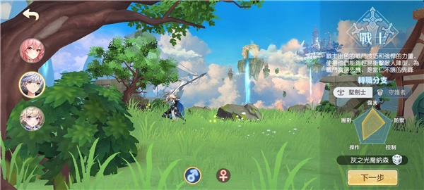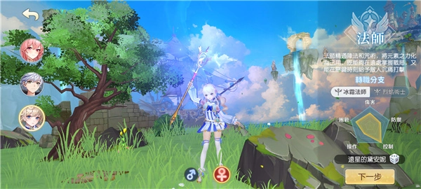 進入游戲后,先選擇角色、輸入角色名稱、選定性別,再點擊“下一步”。需要注意的是,這里的角色類型包含“弓手”“戰(zhàn)士”和“法師”三類。